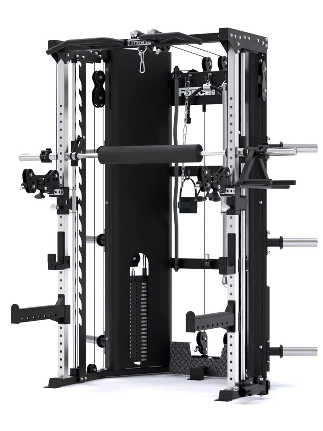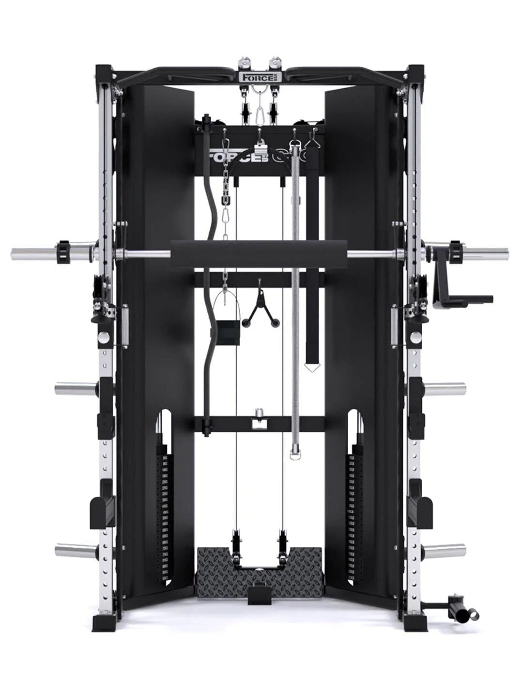 The original innovators of the All-In-One Trainer just broke the rules—again. We upgraded the standard two-pulley setup with a world-first center cable system and six total pulley connection points, driven by dual 220 lb weight stacks.