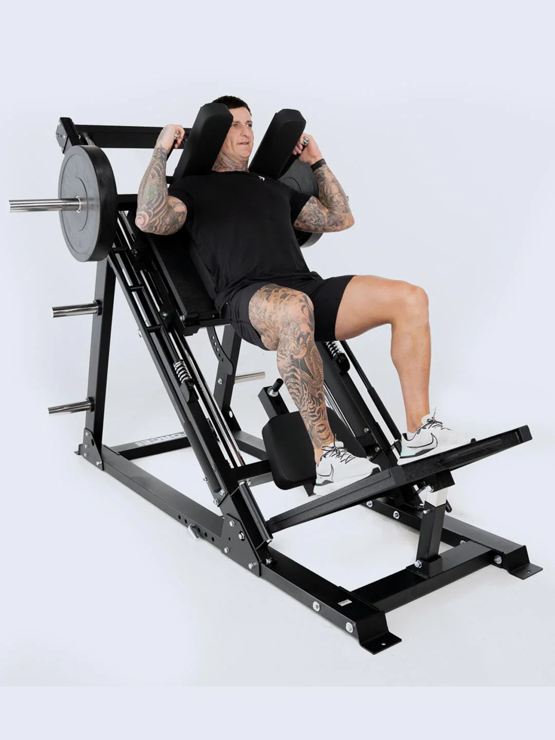 The updated V2 model pushes past 90 degrees of motion with quick-adjust back pads, foot plates, and starting heights to dial in your perfect stance. Its compact 45-degree design builds explosive lower-body strength while keeping your setup simple and efficient.